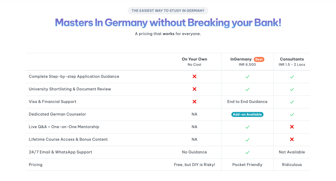 Not just cost-effective, our course provides a deep understanding of the entire study abroad process in Germany. Explore Our Complete Course Modules with Premium Quality Content. Imagine accessing world-class education without the hefty price tag. Master the intricacies of studying in Germany with confidence and clarity.