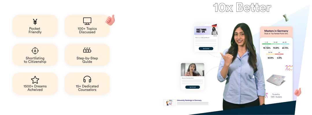 Not just cost-effective, our course provides a deep understanding of the entire study abroad process in Germany. Explore Our Complete Course Modules with Premium Quality Content. Imagine accessing world-class education without the hefty price tag. Master the intricacies of studying in Germany with confidence and clarity.